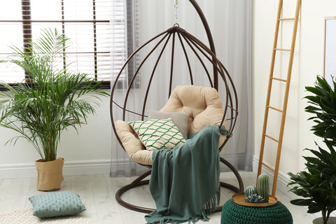 Corners work wonderfully for single seating arrangements. A single chair, a couch, a recliner, a hammock, a hanging chair, or even a beanbag fits snugly into it.