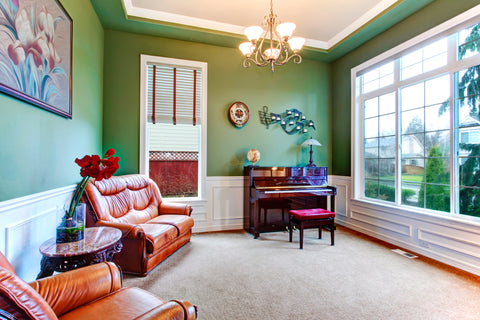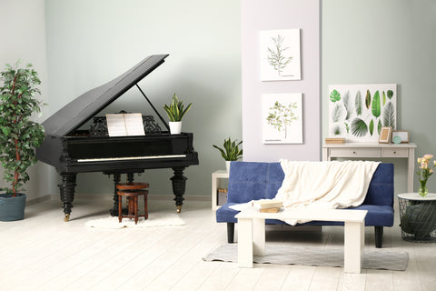 Utilize corner space to set up a guitar or a piano. When placed elsewhere, musical instruments look the odd man out.