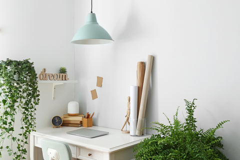 Decorate your corner office with a few ferns and creepers to make it look more vibrant and lively, and set up a light element for illumination. Set up a few office accessories like a pen stand, a power socket, and other essentials to complete the office setup.Ā
