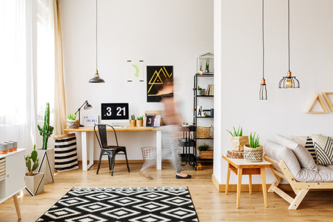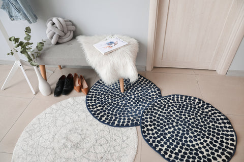For high-traffic areas such as the hallway or living room, opt for patterned or dark rugs that will mask the stains and dirt.