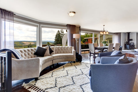 Choose darker rugs for a large room with natural light to create a comfy and intimate aura.