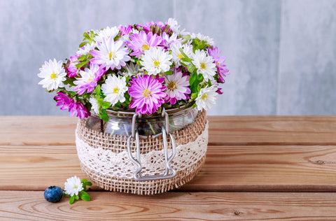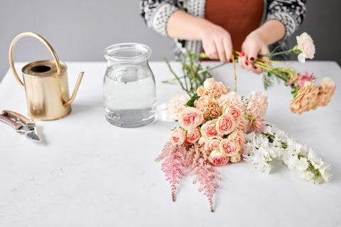 Add homemade flower food (a simple sugar plus vinegar combo will do) in the water to lengthen the life of your flowers and keep them blush and glowing.Ā