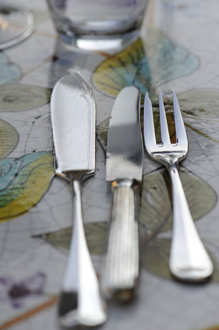 Fish KnifeĀ – This knife beautifully pairs up with the fish fork in its looks with a similar notch on its sides and a pointed head. You can easily make out the pair among the other cutlery.