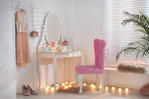 Show off your dressing table by lacing the edges with delicate LED strips or string lights.