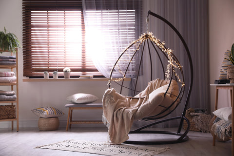 Add fairy lights to the frame of your indoor swing and make it look ravishing. The twinkling hanging chair will (Bet You!) become a statement piece of your living room.